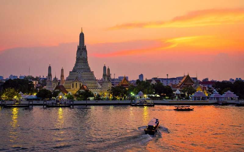 Bangkok, una ciudad de contrastes con sus santuarios y su vibrante vida callejera, la impresionante capital nacional de Tailandia. La rica cultura y herencia del Reino de Siam se puede sentir a lo largo del río Chao Pyra al visitar los deslumbrantes templos dorados del Gran Palacio, el Buda reclinado en Wat Pho y Wat Arun, mientras que los avances modernos se apoderan de otros barrios en la forma de centros comerciales expansivos como Central World, MBK Center, Terminal 21 y Chatuchak Weekend Market. Las delicias culinarias abundan en la calle y en restaurantes elegantes y exclusivos al probar platos clásicos tailandeses de sopa Tom Yum, Pad Thai y Green Curry. El Año Nuevo tailandés (Songkran) es una ocasión especial para viajar a Bangkok si estás interesado en la lucha por el agua, eliminando la mala suerte del año anterior.