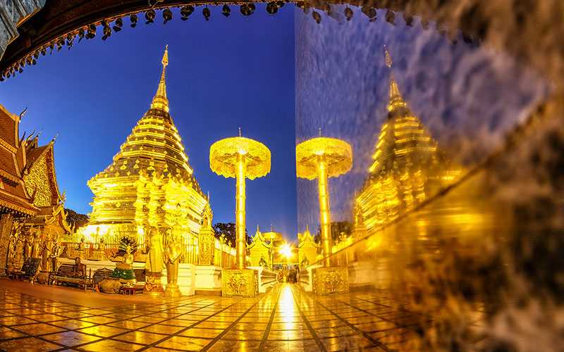 Chiang Mai es la antigua capital del Reino Lanna, también es la provincia más grande del norte montañoso de Tailandia. La atmósfera tranquila de Chiang Mai se presta para relajarse y recargar batería, está a un mundo de distancia de la expansión y el ruido de Bangkok. La ciudad está llena de templos budistas famosos, algunos de ellos son Wat Phra That Doi Suthep, Wat Chedi Luang, Wat Phra Singh y Wat Phra That Doi Kham. La provincia a menudo se usa como punto de partida para excursiones de trekking para conocer las coloridas tribus de las montañas diseminadas por la zona o para jugar con elefantes rehabilitados en el Parque Natural de Elefantes. Los festivales de linternas de Chiang Mai (Yi Peng y Loy Krathong) son las fiestas de iluminación más atractivas del mundo.