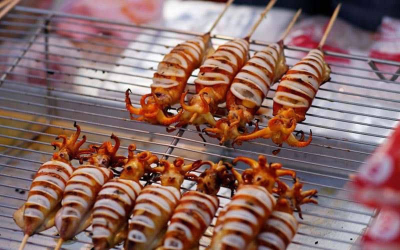 Hay alrededor de 1,000 restaurantes en Krabi, 50% de los cuales son restaurantes tailandeses, y el 20% son restaurantes de mariscos. Las especialidades tailandesas, especialmente los mariscos frescos, son muy apreciadas por los turistas en Krabi. Algunas de sus cocinas populares están influenciadas por la comida de Malasia y China. Los lugareños hacen un gran trabajo ajustando y creando sus propios sabores particulares usando hierbas y especias tailandesas. Pad Thai, sopa de fideos, Som Tam – Gai Yang, Moo Ping y Khao Niao, BBQ de mariscos, Kanom jeen, Khao Mok Kai, Khao Man Kai son unos de los platos tailandesas que debe probar.