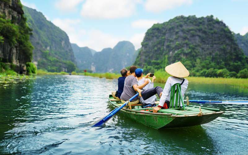 El bote de remos es el principal medio de transporte cuando se visita Trang An, Tam Coc – Bich Dong y es la opción más popular, porque le llevará a visitar todo el complejo de Trang An, dándole la sensación de estar flotando en el agua, admirar la naturaleza majestuosa y hermosas cuevas.