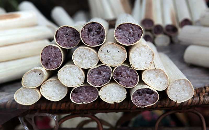 La gastronomía de Laos, es similar a la de los países vecinos: picante, áciday dulce. Sin embargo su cocina tiene su propio estilo distintivo. Los platos más destacados son el arroz pegajoso (Khao Niaw), ensalada de carne picada (Larb), plato nacional, ensalada de papaya verde (Tam Mak Hoong), pescado al vapor (Mok Pa), Baguette Paté (Khao Jii Paté), fideos mojados (Khao Piak Sen), ensalada de arroz crujiente (Naem Khao Tod), salchicha Lao, ensalada de papaya. La cerveza Lao, café Pakxong, vino de arroz laosiano (Lau-khao), whisky laosiano (Lau-lao), jugo de caña de azúcar (Nam oi), té laosiano (saa). Sobre postres, el Khao lam, Khao niao mak muang, Khao pard, Khao tom, Khanom maw kaeng. Precio medio desde 0.6 – 1.2USD a 6 – 12 USD en restaurante medio.