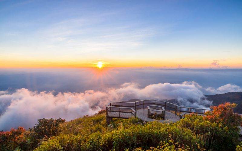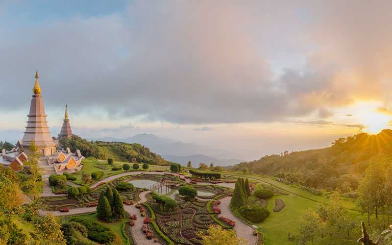 Explore Tailandia en las alturas. Encuentro con nuestro guía en el hotel y luego salida hacia Doi Inthanon, la montaña más alta del país (2600 metros) a lo largo de 47 kilómetros por un camino pintoresco. Las vistas dependen del clima pero los lugares interesantes, notables rododendros en florecimiento, raras aves y mariposas están garantizados. Almuerzo en un restaurante local. En el camino de vuelta, visitaremos cascadas, aldeas de las tribus de las colinas y el templo con las sagradas reliquias en Chomthong. Una vez finalizado el itinerario, su guía lo llevará de regreso al hotel.