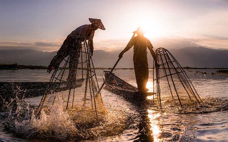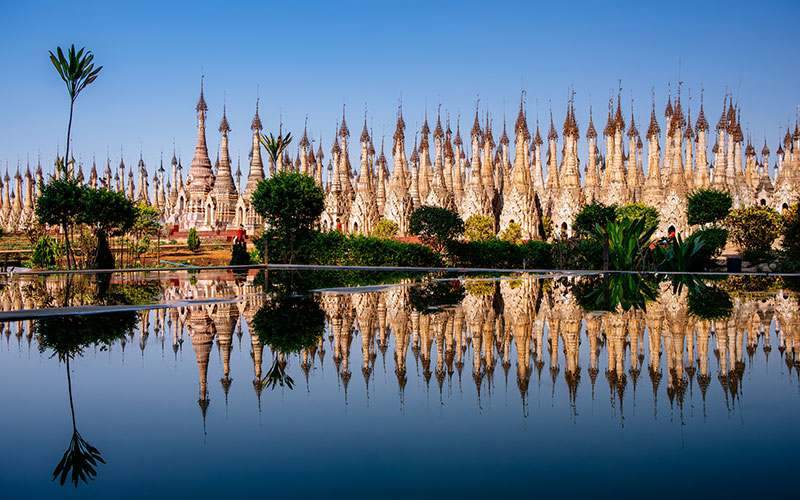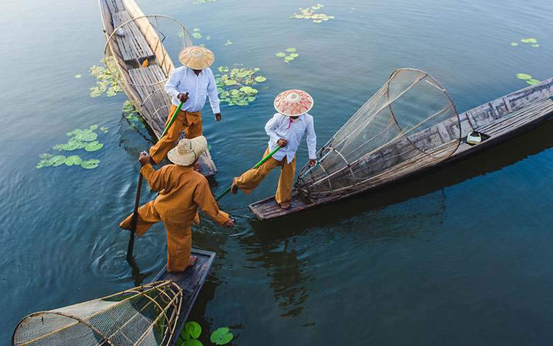Recojo en barco desde el hotel y hacemos una excursión de día completo en el lago Inle. Su día contará con vistas de los famosos remeros de piernas, los típicos jardines flotantes, los métodos locales de pesca, la vida del pueblo y los magníficos paisajes. Las visitas se realizan a PHAUNGDAW OO PAGODA, el pueblo de tejidos de INPAWKHON y a uno de los mercados locales en la región del Lago Inle (solo en días de mercado). Por la tarde, dependiendo del nivel del agua, deberá proceder a la orilla occidental del lago Inle, donde encontrará el comienzo de un camino de escalera que conduce al complejo oculto y desconocido de INDEIN PAGODA. Visite uno de los lugares históricos más asombrosos de la orilla del lago, que consta de cientos de pequeñas estupas cubiertas de musgo y verdes. Regrese a su hotel en bote a través de una exuberante vegetación.