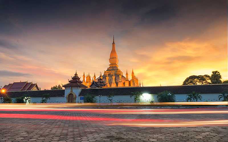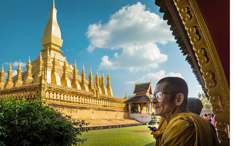Luego, visitamos Pha That Luang, una estupa budista recubierta con oro situada en el centro de Vientián, Laos. Desde su fundación, probablemente en el siglo III, ha sido reconstruida varias veces, la última vez en la década de 1930