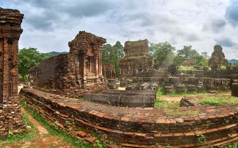 Visitamos el famoso Santuario de My Son, conjunto de templos hindúes abandonados y parcialmente en ruinas, construidos entre el siglo IV y el XIV por los reyes champa (Chiêm Thành en vietnamita).12 Los templos están dedicados a la veneración del dios Shiva, conocido con varios nombres localmente, el más importante de los cuales es Bhadreshvara.