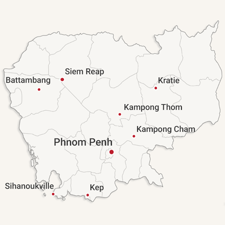 Camboya es un destino con mucho que descubrir, situado en la península de Indochina, de gente amigable y tenaz. Angkor Thom es su principal atracción y el templo de Angkor Wat, es símbolo sus creencias y gran orgullo nacional. Angkor es el lugar más visitado del país, junto con la capital, Phnom Penh, activa ciudad de arquitectura colonial. Bello país apreciado también por los amantes de la naturaleza que quieran disfrutar de un ambiente relajado y un agradable clima. Podrán visitar además de Angkor, el lago Tonle Sap con sus típicas casas flotantes o Koh Rong, hermosa isla de arena blanca y preciosos bosques que seduce a turistas de todo el mundo con sus increíbles vistas y con las exhibiciones de danza Apsaras.