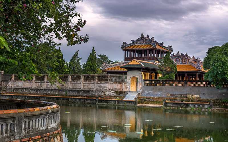 La ciudad de Hue en el centro de Vietnam, fue entre los años 1802 y 1945 la capital feudal de la dinastía Nguyen. Es muy conocida por su patrimonio arquitectónico, cuyo Conjunto de Monumentos de Huế fue declarado Patrimonio de la Humanidad por la Unesco en el año 1993. Es como una vieja dama de alta alcurnia que exhibe orgullosa al viajero su rico pasado histórico de gloriosas y decadentes joyas monumentales dispersas entre grandiosas murallas: exquisitos edificios arquitectónicos, tumbas asombrosas que son como palacios, coloridas puertas ornamentadas que infunden temor al traspasarlas, y decadentes “ciudades púrpura” que alimentan viejas leyendas, y de las que se dice son ”prohibidas”.