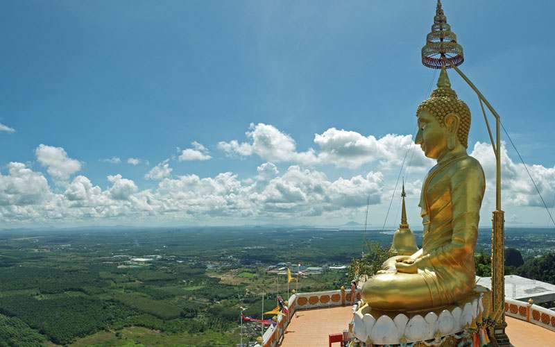 O Tiger Cave Temple é um templo sagrado no alto da montanha, famoso por sua escadaria de 1.260 degraus. A subida é exigente, mas a vista panorâmica do topo compensa cada esforço — especialmente ao nascer ou pôr do sol.