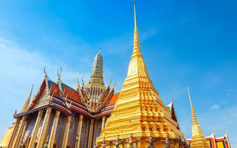 Wat Phra Kaew é famoso por suas obras arquitetônicas detalhadas. Você não pode deixar de visitar o Phra Si Rattana Chedi, um templo dourado que abriga relíquias de Buda, e o Phra Mondop, a biblioteca real com mosaicos e detalhes em ouro.