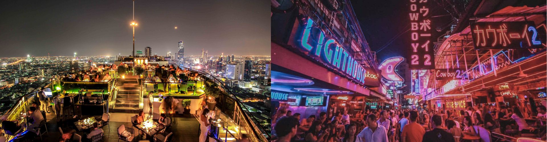 | 5. Drinks em sky bars e rooftops famosos | Silom/Sathorn, Riverside e Sukhumvit | Casais, grupos de amigos, quem busca uma experiência sofisticada |