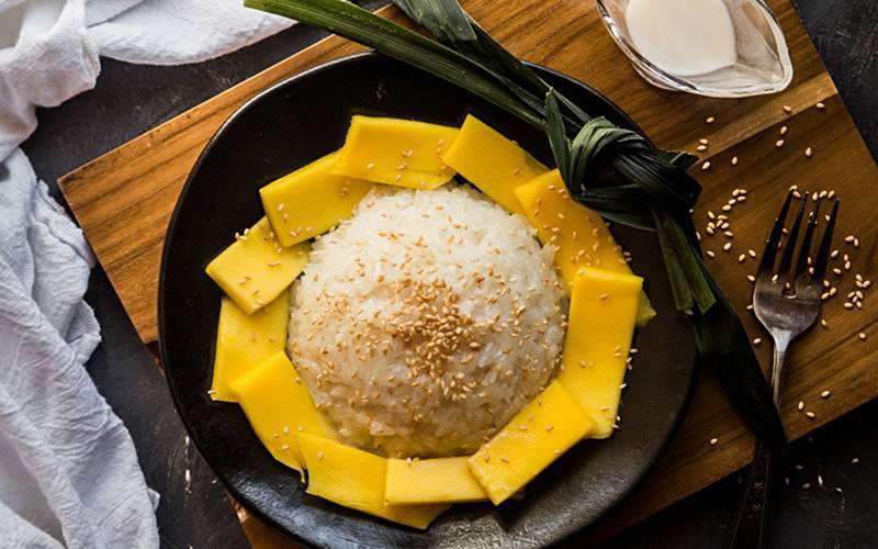 Khanom Dak Nga: uma combinação interessante de arroz glutinoso, gergelim, amendoim, sal, açúcar e coco. No passado, o lanche é famoso para os trabalhadores locais.