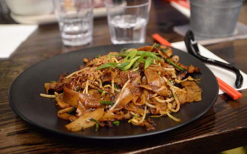 Gooay teeo kooa gai: macarrão de arroz frito com galinha e ovo