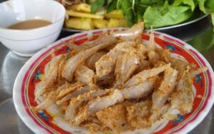 La especialidad local es algo que debe probar cuando viaja por Da Nang. Mít trộn (jaca mixta), Ốc hút (caracoles fritos con hierba de limón y chile), Chè xoa hạt lựu (sopa dulce), bánh tráng cuốn thịt heo (rollos de papel de arroz con cerdo) son algunos de los platos locales más famosos en Da Nang También puede encontrar la famosa especialidad de Hoi An aquí en Da Nang – Fideos Quang. Si la comida local no se adapta a su gusto, puede buscar fácilmente buenos restaurantes de estilo occidental, comida china, coreana o japonesa.