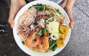 Algunos de los platos que debe probar al viajar a Phu Quoc: Banh Canh (sopa de fideos con pescado y cerdo), sopa de fideos con camarones, Goi ca mai (ensalada de arenque cruda).