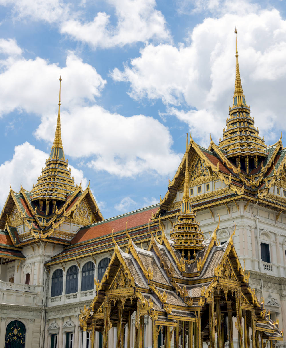 Com mais de 218 mil m², o Grande Palácio reúne mais de 100 palácios, templos e jardins, refletindo a riqueza cultural, o simbolismo e a história da realeza tailandesa.